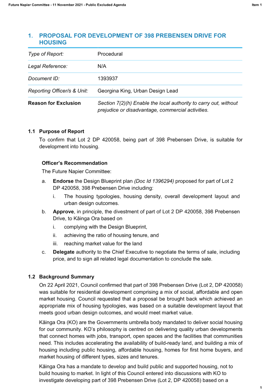 Proposal for development of 398 Prebensen Drive for housing................................................................................ 35