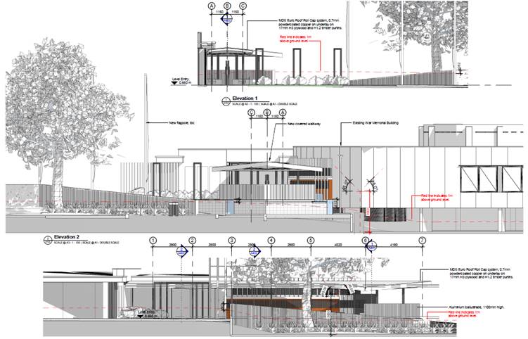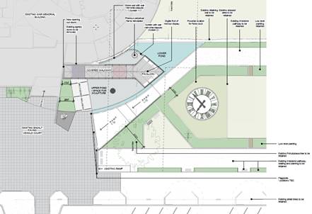 The proposal forms part of the wider Napier War Memorial restoration with the key objective being to reinstate the Roll of Honour and Perpetual Flame. This will be achieved via the construction of a covered walkway and pavilion which will be constructed off the paved courtyard to the west of the Memorial Centre building. The location of the new structure will be over the existing location of the historical floral clock. The exact position for the clock to be repositioned is yet to be determined however its relocation can stand alone beyond this consent and does not trigger the need for a resource consent.