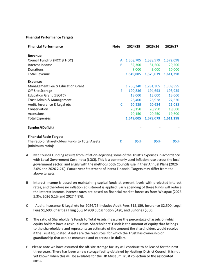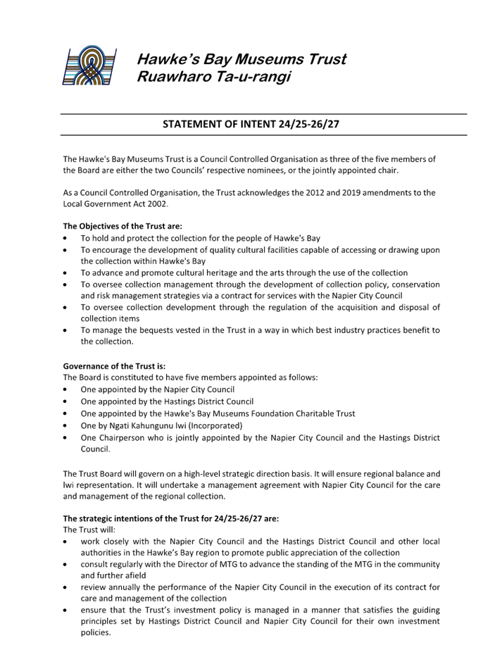 1. Hawke's Bay Museums Trust Draft Statement of Intent and Financial Reporting