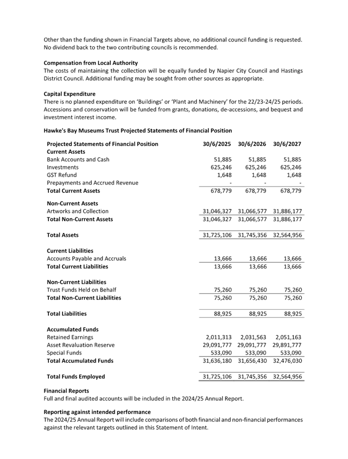 To receive the Hawke’s Bay Museums Trust Financial Report for the six months ended 31 December 2023 and draft Statement of Intent 2025-2027.