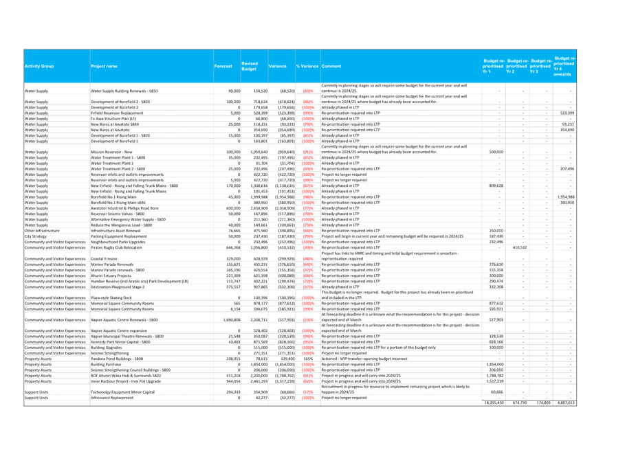 There are capital projects worth $25m that have been re-budgeted in the proposed capital plan for the 2024-34 Long Term Plan. Council’s policy position of not carrying forward budget from one financial year to the next means that funding for the remaining unspent capital budgets of $25m will be re-forecast as part of the revised budget process in 24/25. Officers will work to the same fiscal envelope for 2024/25 when revising the capital budgets which may involve moving projects into future years of the LTP.