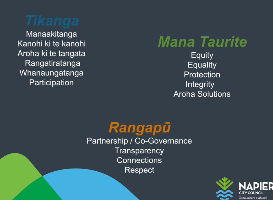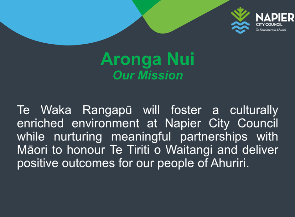 The Ngā Mānukanuka o te Iwi Committee has been established by Council to continue the development of strategic and sustainable relationships with Ahuriri Māori. Council shall meet the intent and spirit of the Council’s obligations set out in the legislation more particularly the obligations of the Local Government Act 2002;