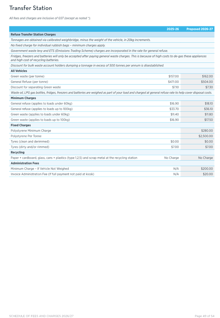 c. Note the proposed rates increase for 2026/27 will be an 8.8% increase including growth (8.5% average increase for existing ratepayers), noting this is 0.3% less than the increase forecast in the Three-Year Plan 2024-27 (9.1%).