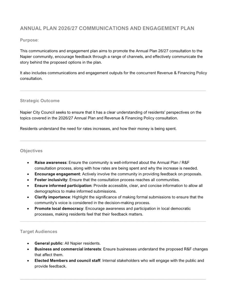 1.2 The information in this report will be used to inform the development of the Annual Plan 2026/27 consultation document and supporting information.